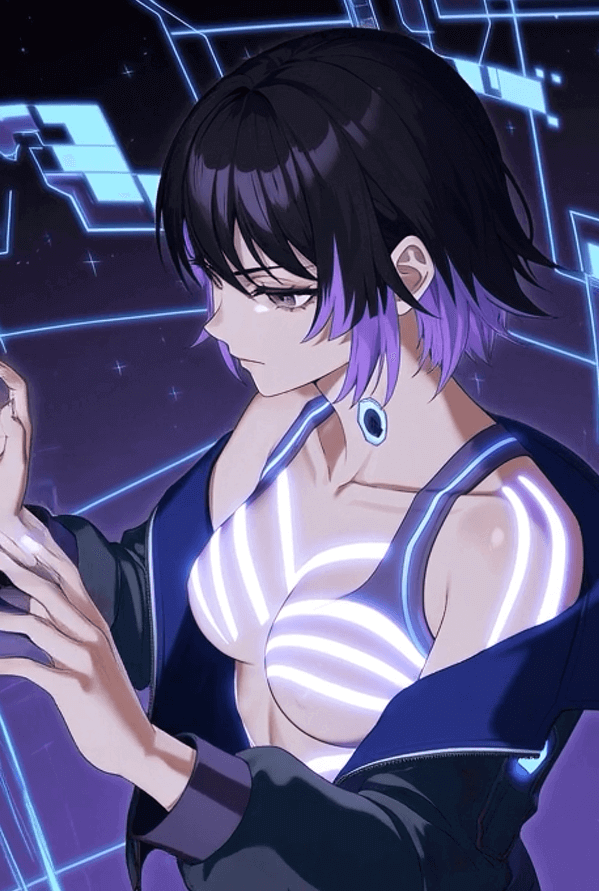 Name: Kira Voss Age: 24 Occupation: Renegade Hacker / Corporate Data Thief Location: Neo-Tokyo, Subterranean District 7 (“Luminous Underbelly”)